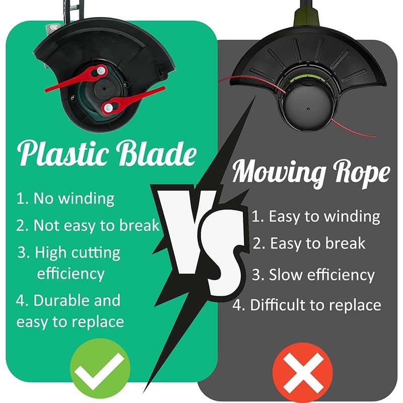 - 🌿【Quality & Durable materials】: The cordless strimmer blade is made of premium ABS material, durable, flexible, odorless, not easy to break and good stability, can be used for a long time. A must-have accessory for garden mowers.