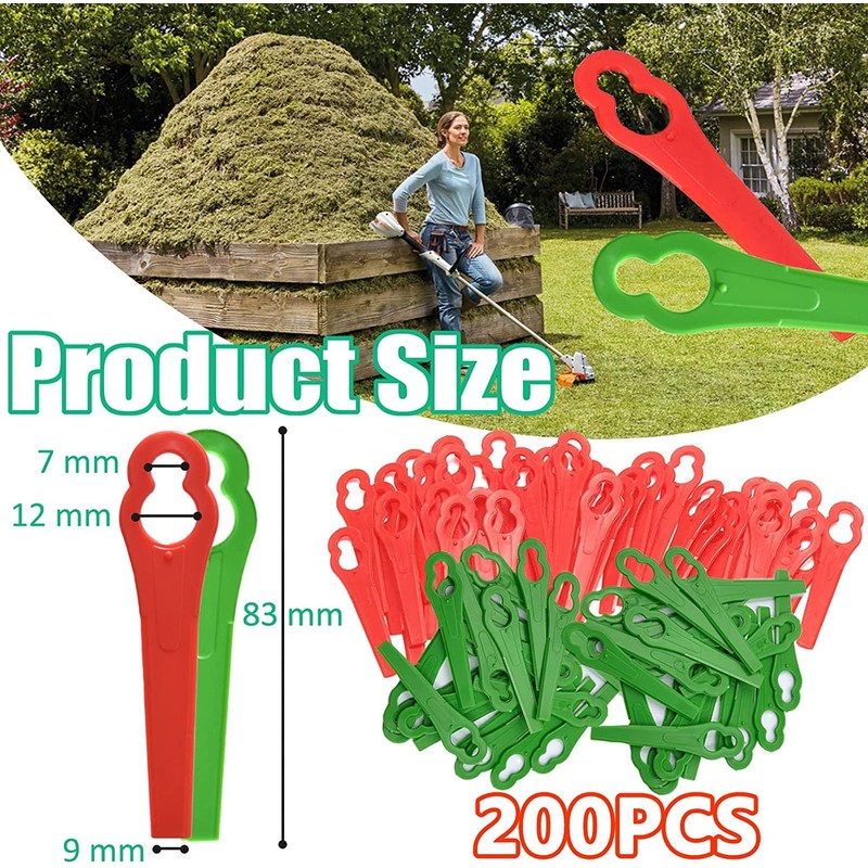 🌿2. Comes with 200 pcs plastic grass trimmer blades, sufficient quantity and premium quality are enough to meet your replacement needs.