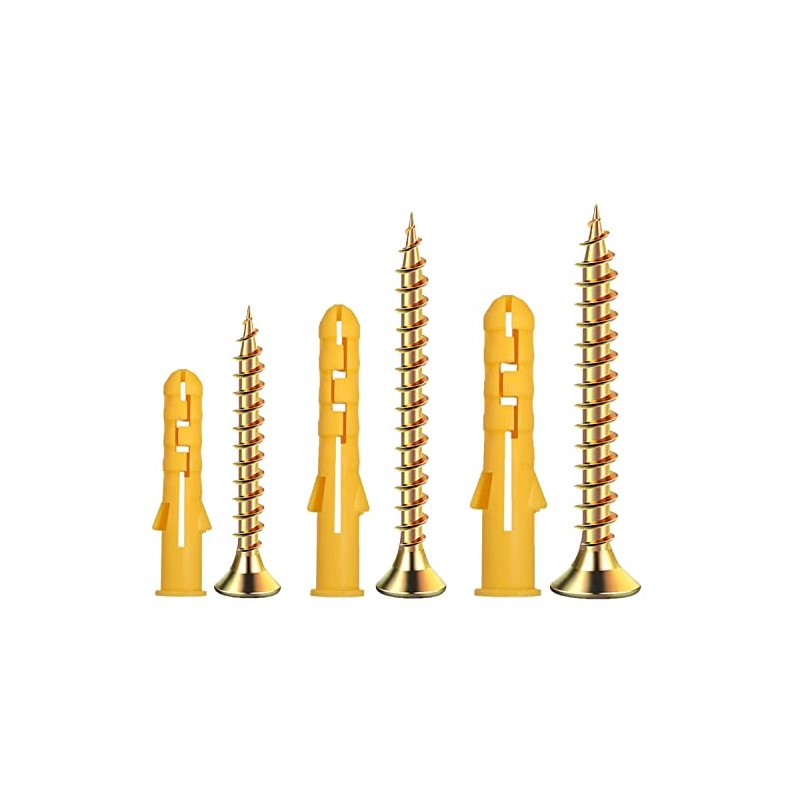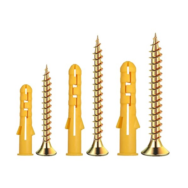 200 Pcs Wall Plugs and Screws Set,Masonry Brick Concrete Fixings Plugs Assortment Kit,Screws and Rawl Plugs in Compartment Box,Zinc Galvanized 3 Different Sizeâ¦