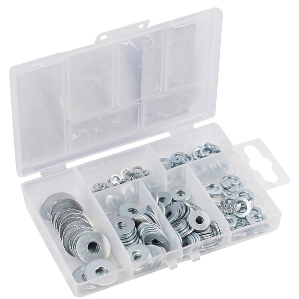 - COMPREHENSIVE SET: 200 piece flat washer assortment kit in various sizes, neatly organised in a durable plastic storage case