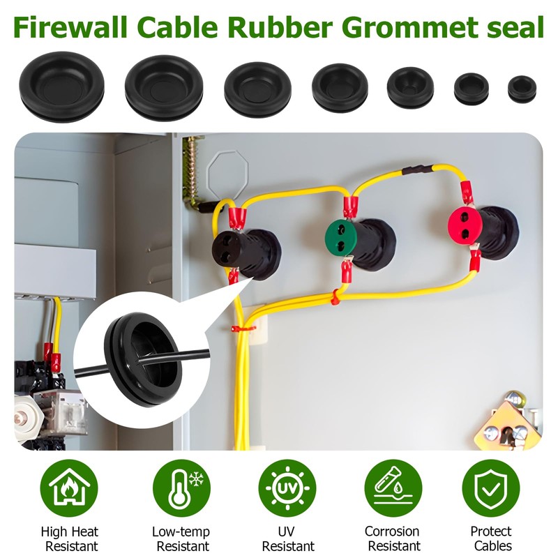 These rubber plugs washers black assortment are equipped with seals for bulkhead installation. Excellent tool for repairing cables and preventing metal contact, protecting wires and cables as well as insulation.
