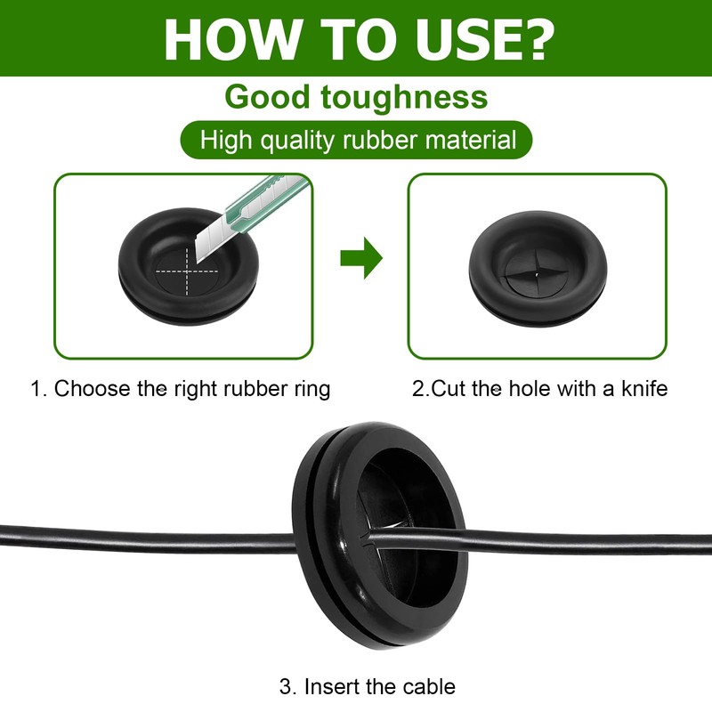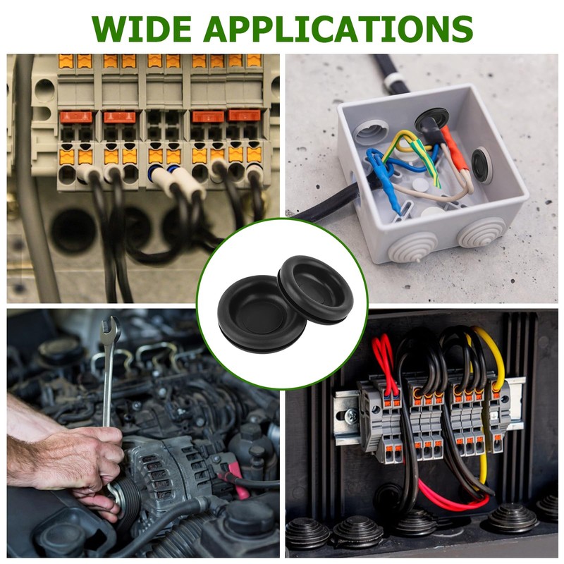 - Rubber grommet kits: you will receive a total of 200 pieces cable grommet rubber for sheet metal, 7 mm x 80 pieces, 9 mm x 40 pieces, 12 mm x 30 pieces, 16 mm x 20 pieces, 20 mm x 10 pieces, 22 mm x 10 pieces, 25 mm x 10 pieces, enough for your daily use.