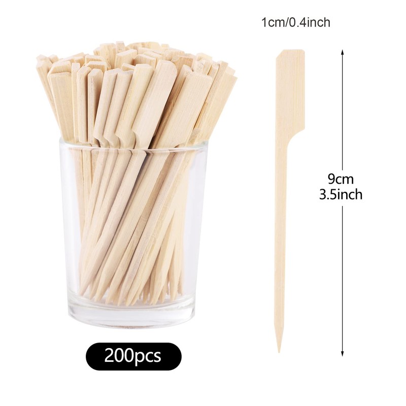 200 Pieces Paddle Bamboo Skewers, Flat Burgers Sticks Children Skewers Kids W...
