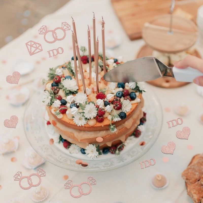 - 【Generous Pack Contents】Includes 200 pieces of glitter confetti featuring rose gold rings, gold rings, “I do” phrases, hearts, and circles—ample quantity perfect for decorating engagement parties and various celebration tables.
