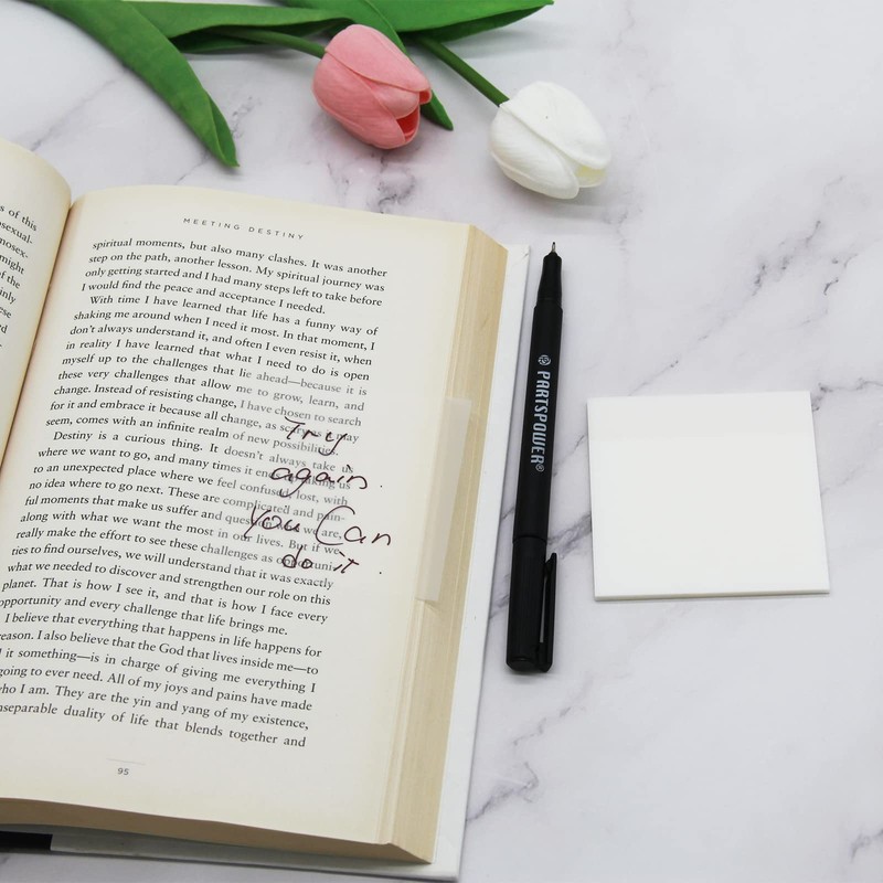 - ✍【That You Must Know】Unlike paper note pads, these sticky notes are translucent/transparent made of PET (plastic), perform perfectly as annotation notes and nicely writable with fast dry pens, such as oil-based permanent pens markers, ballpoint pens and pencils. However, it would smudge somehow if you wrote with slow dry pens, such as ink pens, water-based markers.