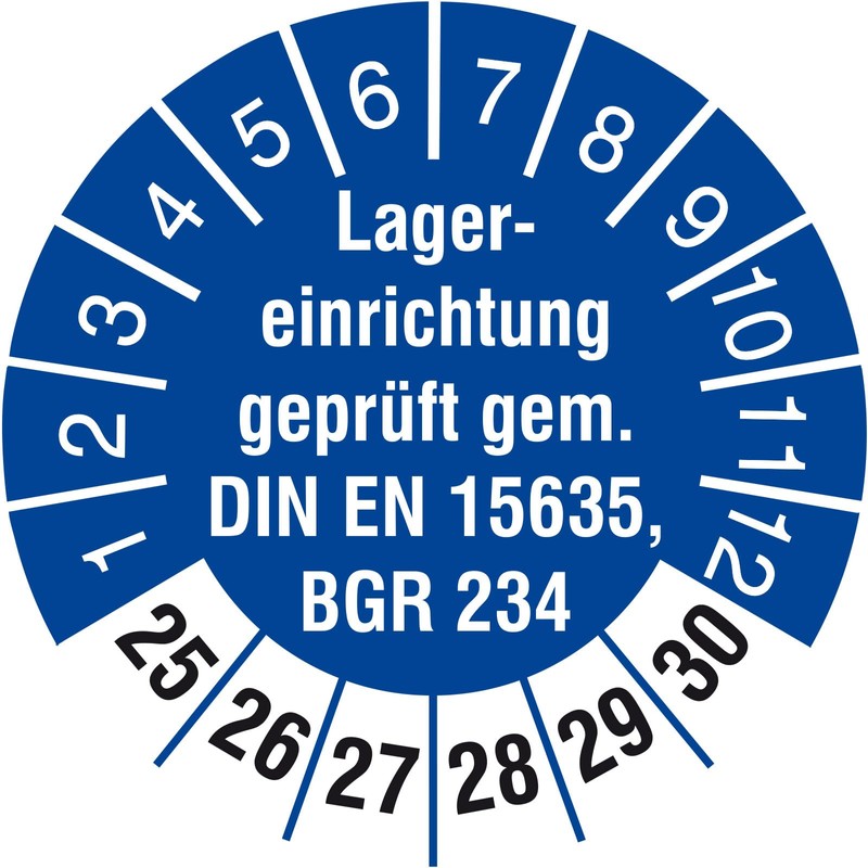 200 Test Labels 30 mm Storage Equipment Tested DIN EN 15635 BGR 234 2025-2030 Test Badges