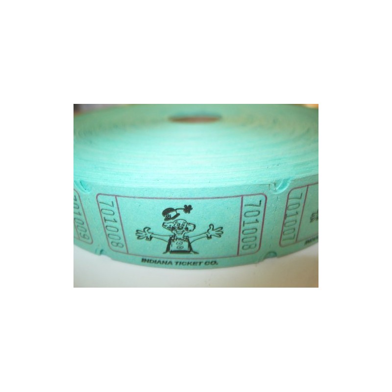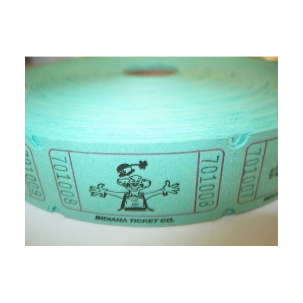 2000 Clown Green Single Roll Consecutively Numbered Raffle Tickets