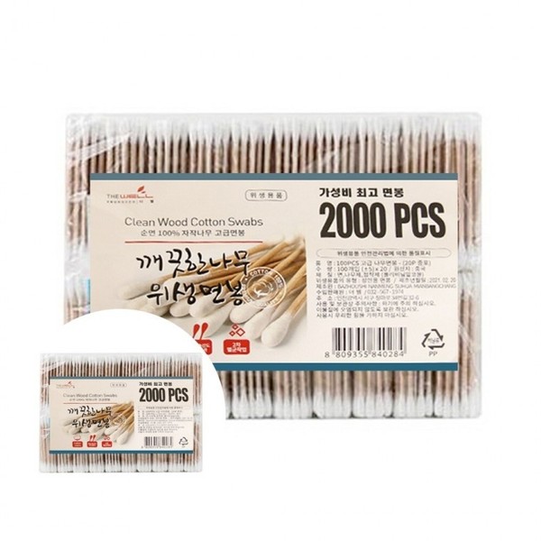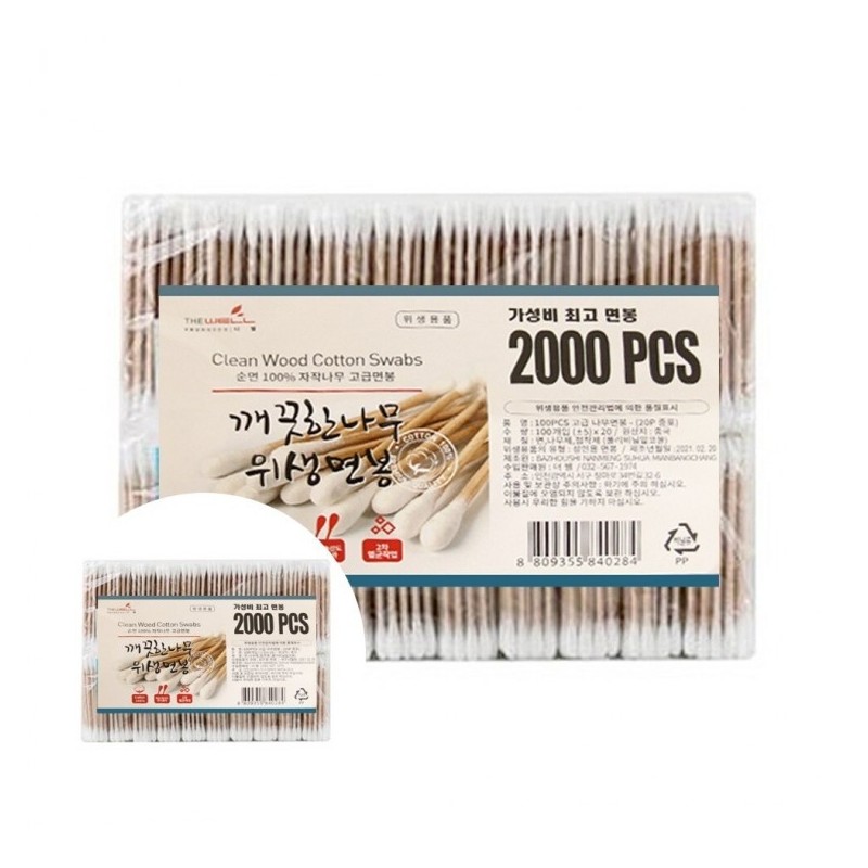 2000 Count Wooden Sanitary Cotton Swabs Bulk Cotton Swabs 2ea