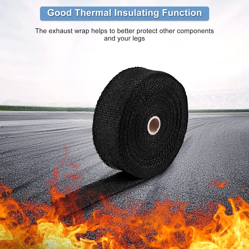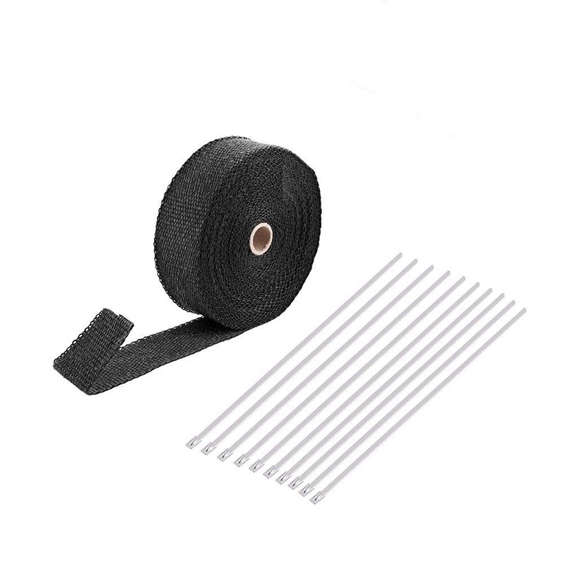 2000 Heat Protection Tape for Motorcycle, 15 m Exhaust Tape, Manifold Tape, Thermal Tape, Heat Protection, with 10 Pieces Stainless Steel Cable Ties for Manifolds and Exhaust Systems