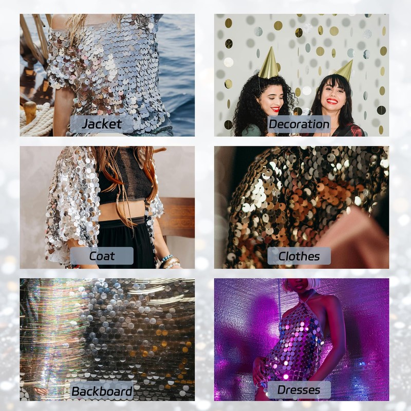 - Sequins Material: Crafted from good quality PVC which is light weight and durable, not easy to fade, it has smooth edges and shining surface which has a mirror like finish, can emit different colors under different light