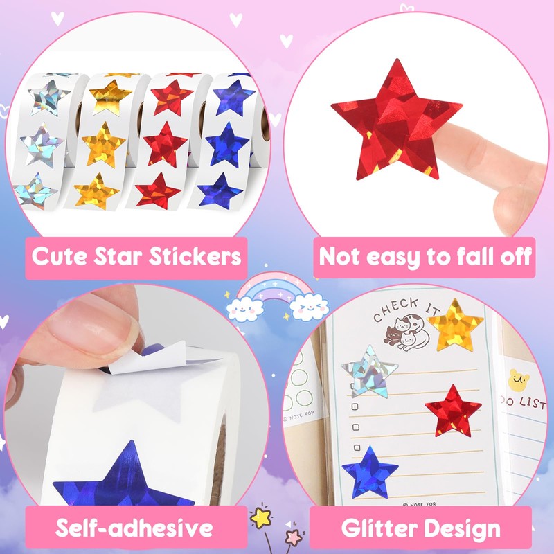 - 【Durable and Vibrant Star Stickers】Made from high-quality laser paper, these star stickers feature vibrant colors and glitter effects that are both durable and visually appealing, offering a cute and delightful addition to any project or reward system
