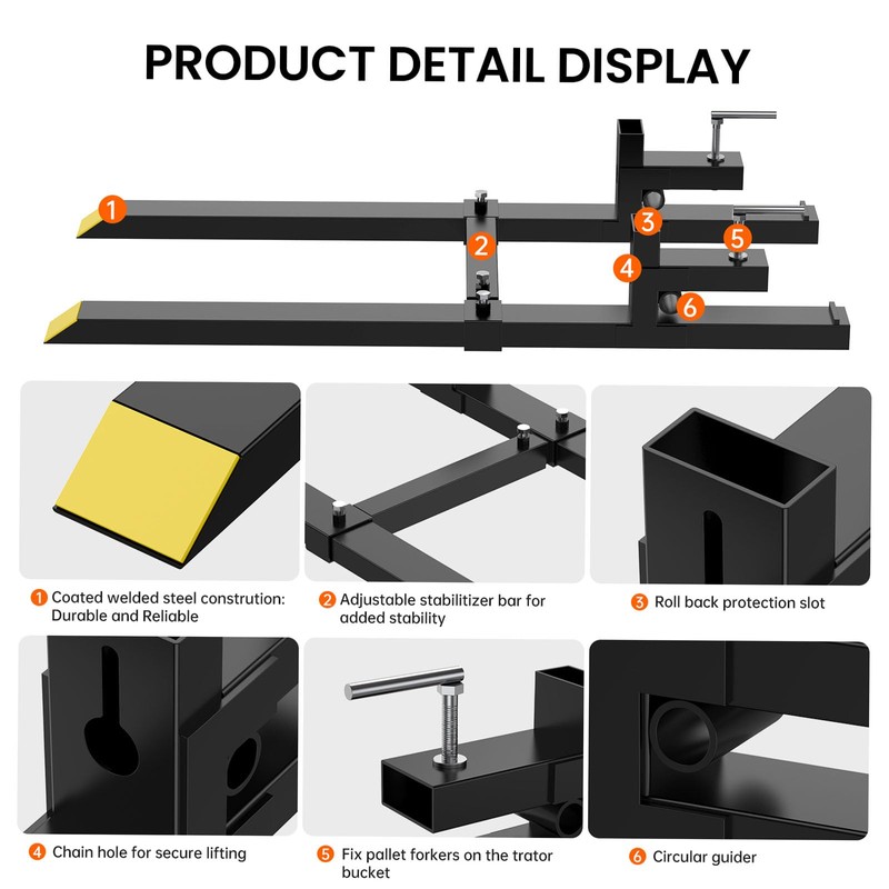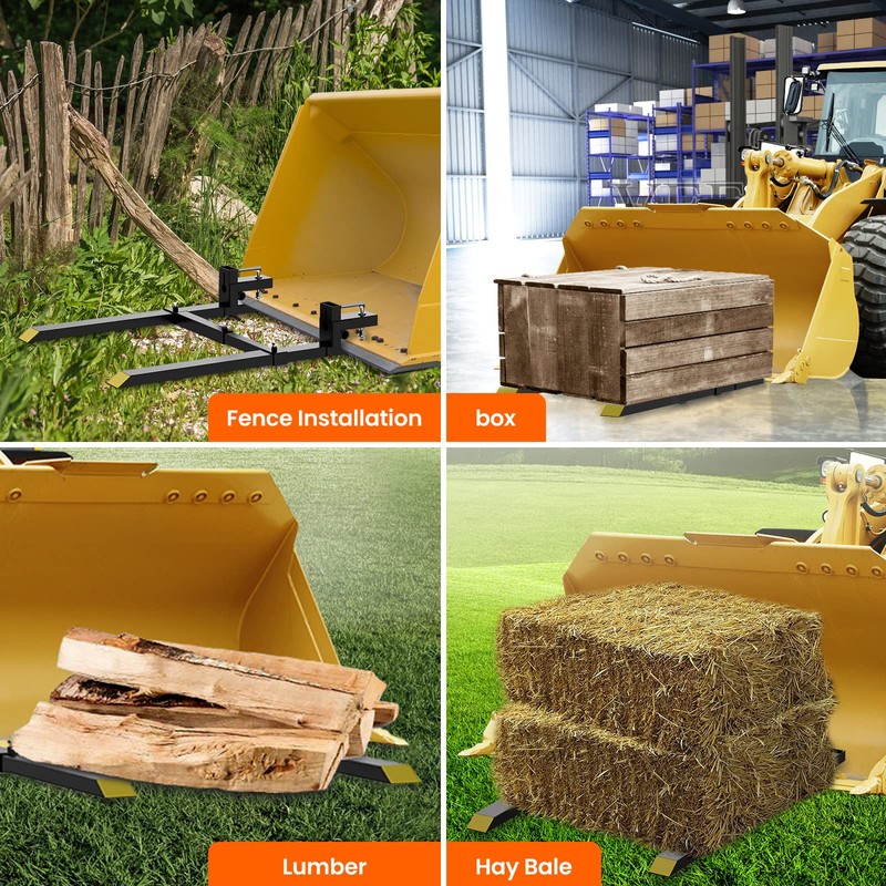 - 【Multifunctional Use】 These pallet forks excel in a variety of tasks, including transporting logs, lumber, and firewood, relocating fence posts and hay bales, as well as clearing debris and brush.
