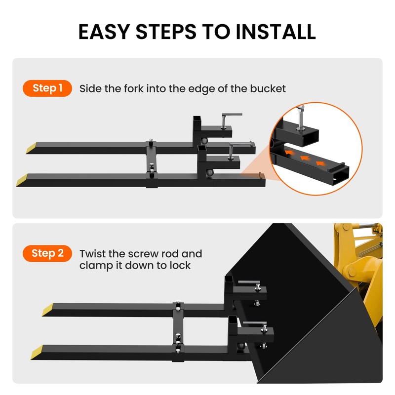 - 【Easy Installation】It's simply slide the fork over the cutting edge of the bucket, and clamp it down to lock
