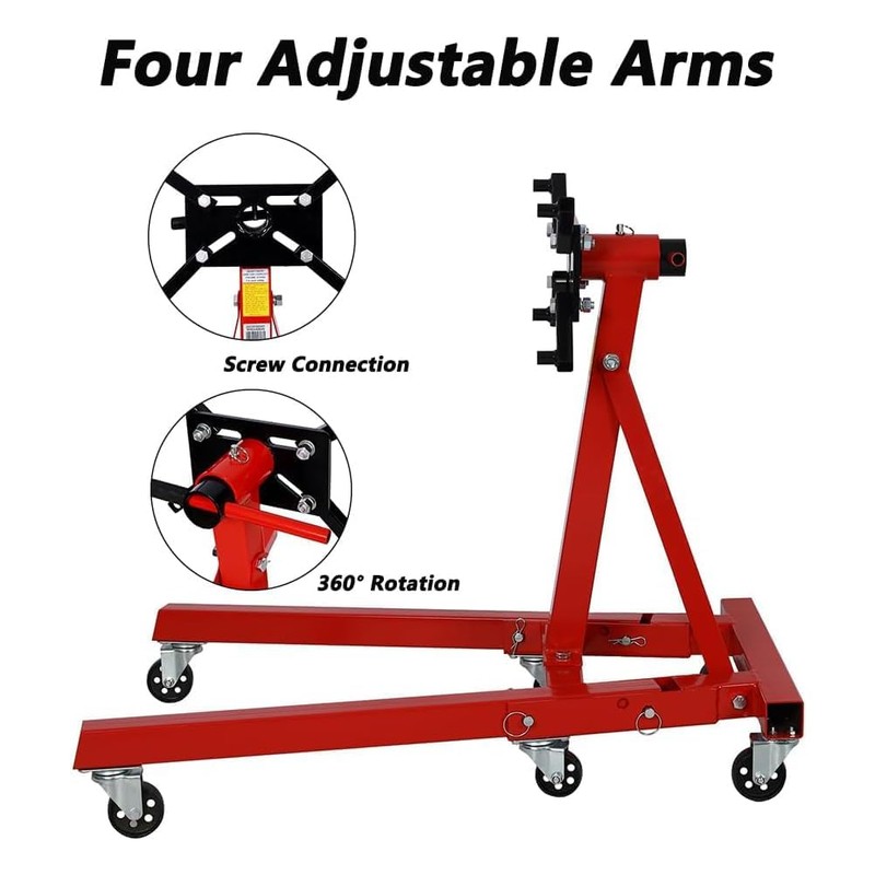 - 【360° ROTATING MOUNTING HEAD WITH ADJUSTABLE ARMS】The mounting head features four adjustable arms, offering full 360-degree rotation for easy access to every part of the engine. This provides added flexibility, making engine assembly and disassembly quicker and more efficient.