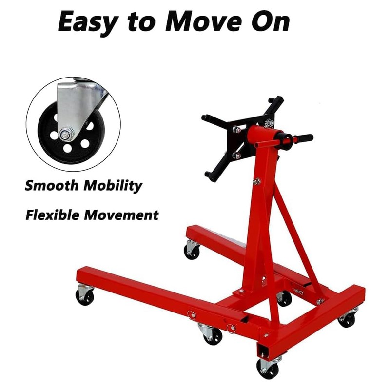 - 【HEAVY-DUTY CONSTRUCTION WITH WHEELS】Built with heavy-gauge steel construction, this engine stand is engineered for long-term durability. It’s equipped with steel bearing casters, providing easy maneuverability, so you can move your engine stand effortlessly around your work area.
