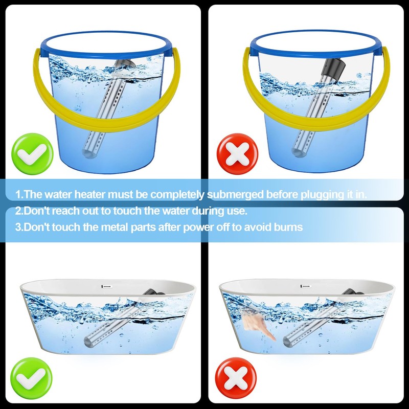 - 【Versatile and Portable】 Ideal for a variety of containers, including buckets, basins, bathtubs, and inflatable pools. This lightweight heater is perfect for indoor and outdoor use, making it an excellent choice for camping, travel, pet baths, and more!