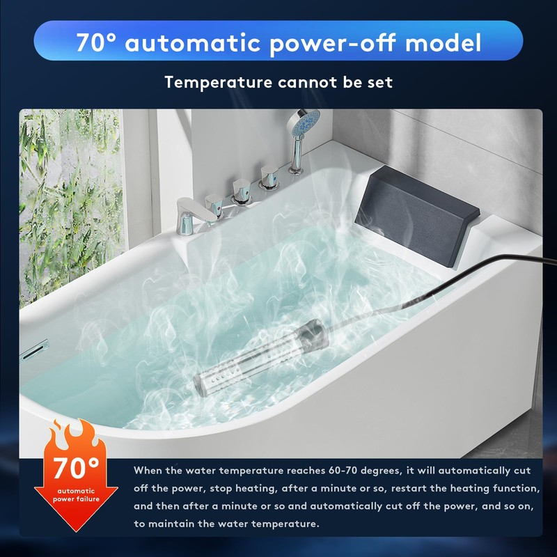 - 🌳Water Heater Principle: The water heater electric built-in temperature controller has a temperature of 70 degrees. When the water temperature reaches around 70 degrees, it can automatically power off. When the pool heater experiences water shortage and dry burning, bucket heater will also automatically power off, with dry burning power-off protection function