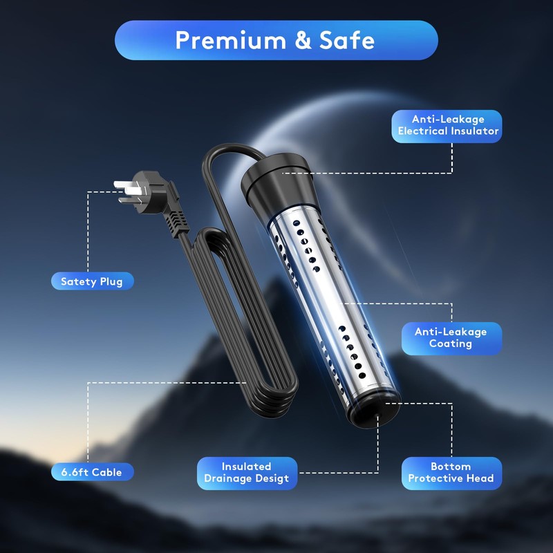 - 🌳Easy To Carry: The hot tub heater is very convenient for travelers, heating water to prevent freezing, emergency hot water supply, construction site hot water, providing you with dual safety protection, allowing you to enjoy comfortable soaking at any time. Attention: Please do not use continuously for more than 3 hours! Do not plug two immersion heaters into the same socket either.