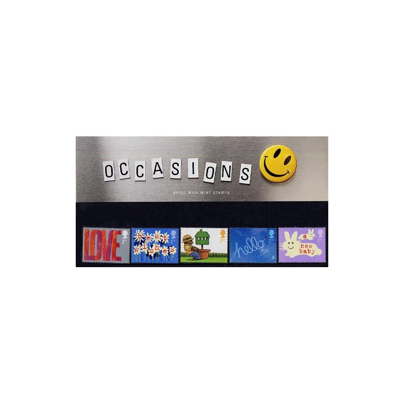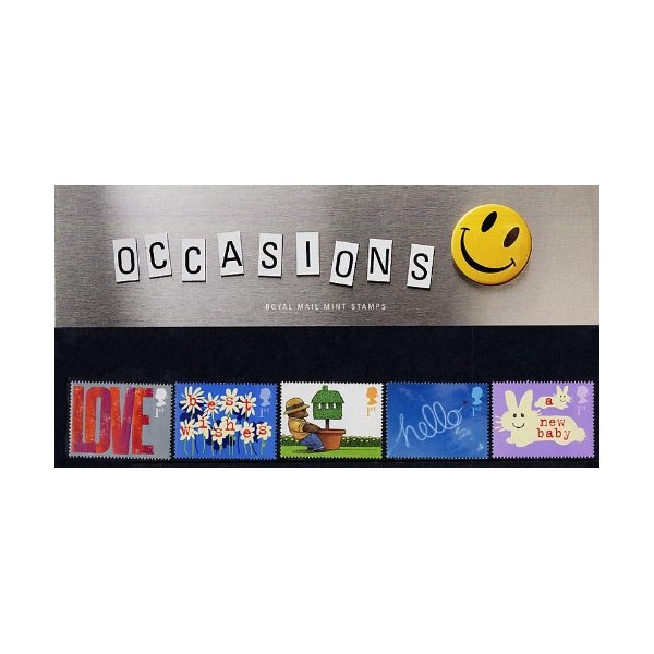 - This pack contains a set of five mint stamps, which were designed to enhance the sense of an occasion surrounding a special event. They depict, Love & Romance, New Home, New Baby, Thanks and Celebration.