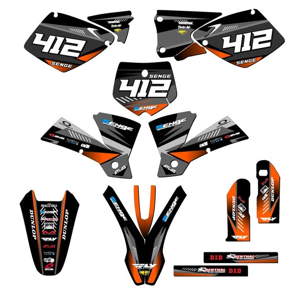 - 2003 MXC SURGE Black Senge Graphics Kit Compatible with KTM. The photo shown shows the exact decals you will receive. Please refer to the photo to make sure you are getting the exact amount of coverage you want. You can toggle between base, complete, and rider I.D. to see all of the differences.