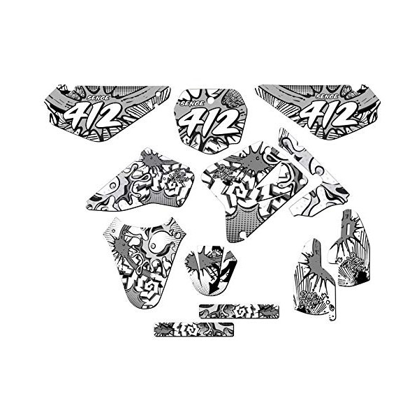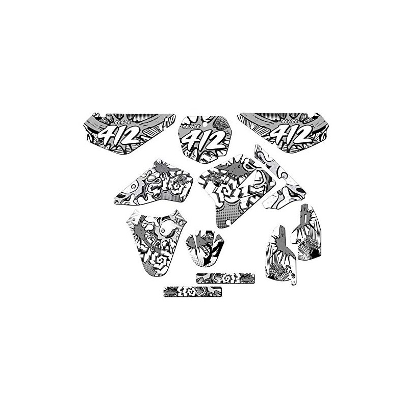 - 2005-2023 RM 85 ZANY White Senge Graphics Kit Compatible with Suzuki. The photo shown shows the exact decals you will receive. Please refer to the photo to make sure you are getting the exact amount of coverage you want. You can toggle between base, complete, and rider I.D. to see all of the differences.