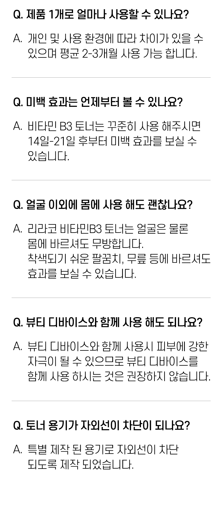 - Expiration Date or Period of Use After Opening: Refer to the product detail page