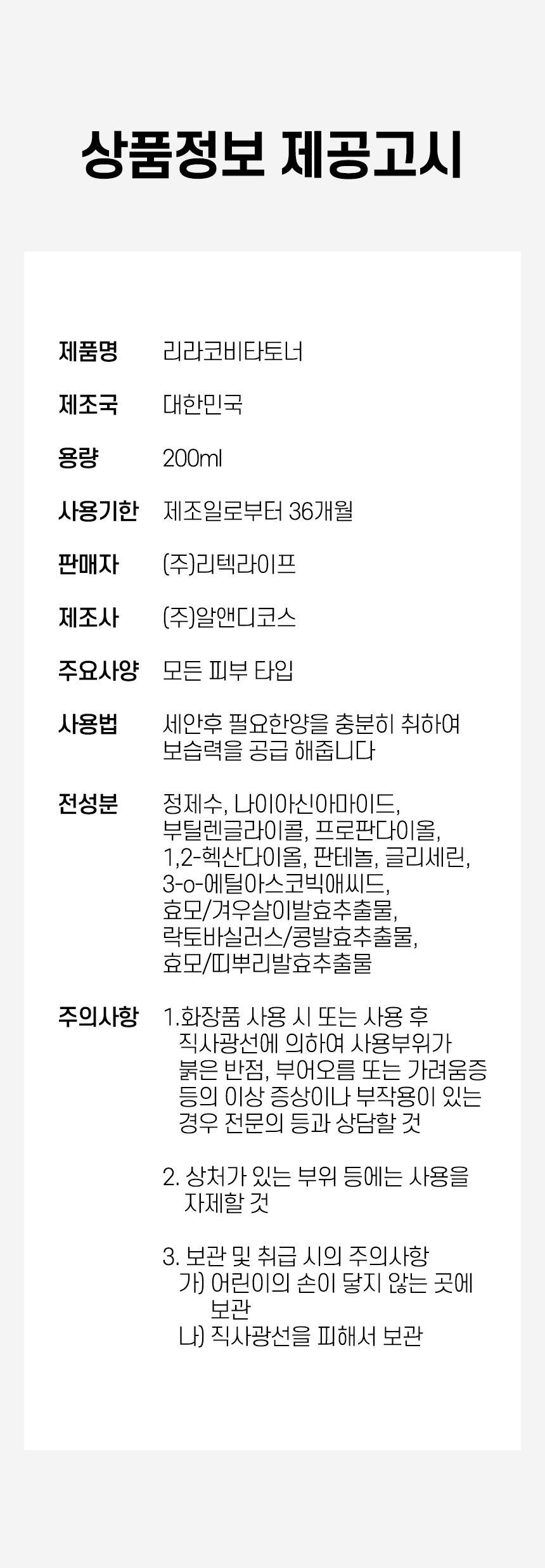 리라코 나이아신아마이드 비타 토너 200ml