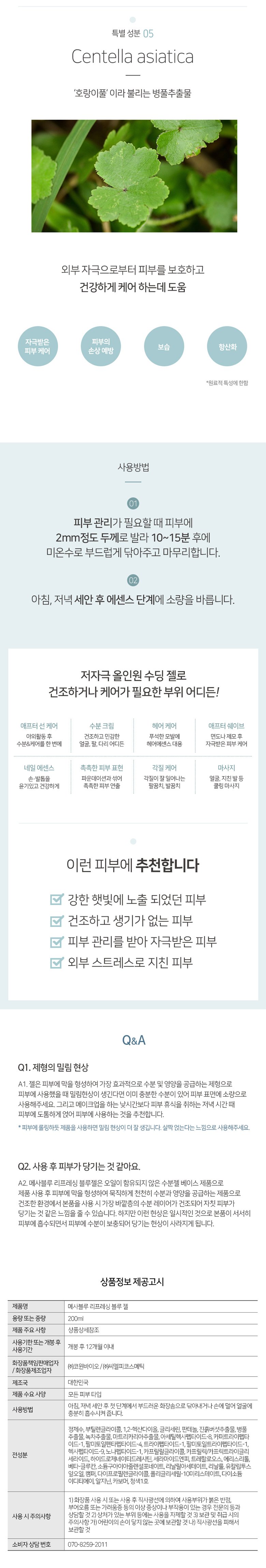 (메사블루)리프레싱 블루젤 200ml (Mesablue) Refreshing Blue Gel 200ml
