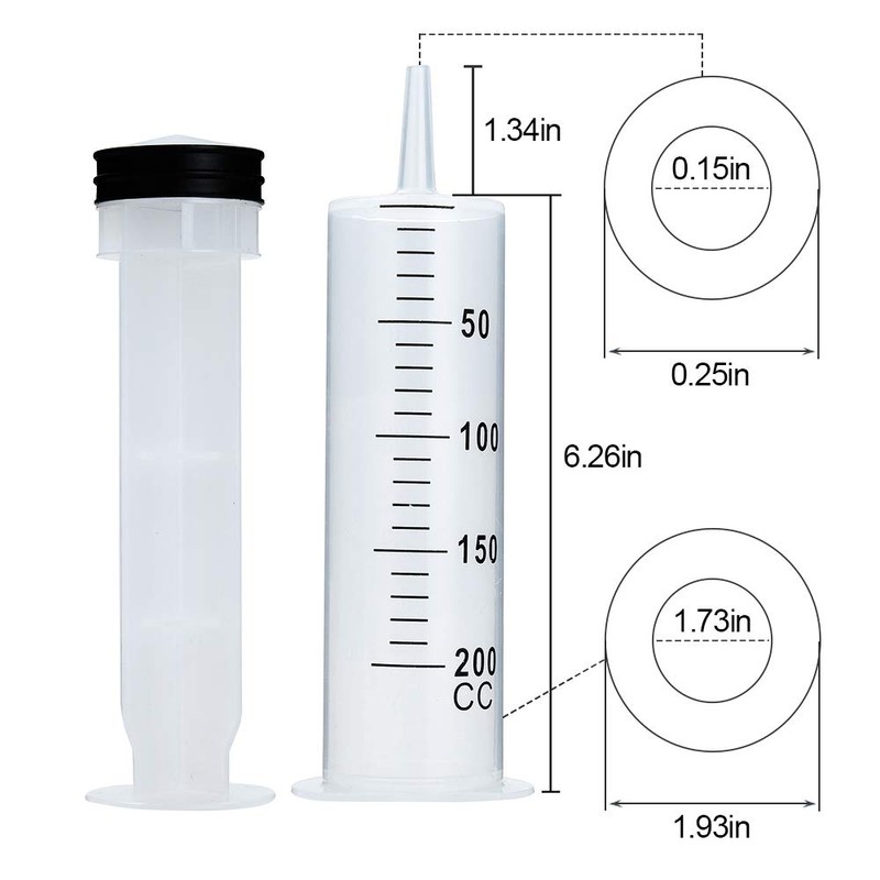200ml Syringe with Tip Adapter, Large Plastic Garden Syringes for Scientific Labs, Measuring, Watering, Refilling, Filtration Multiple Uses