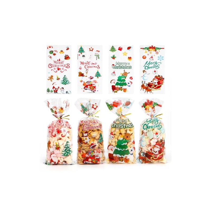 - High Quality Material: These christmas candy bags are made of quality food OPP plastic material, tasteless and non-toxic, which is not easy to tear, durable and lightweight to use. The twist tie is easy to twist, the tightness is good, suitable for you to put candy, chocolate, cookie, small cake or other snacks in it