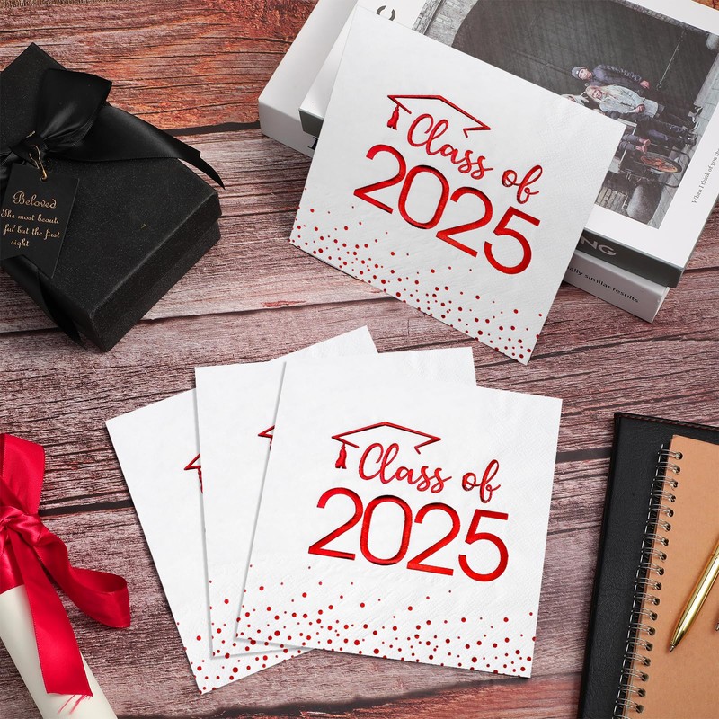- Wide Applications: this graduation cocktail napkins is printed with “class of 2025” using hot stamping , it can match well with your other graduation party supplies,is a perfect choice for 2025 High School University College Graduation party ,will make your graduation prom party more charming and warm.