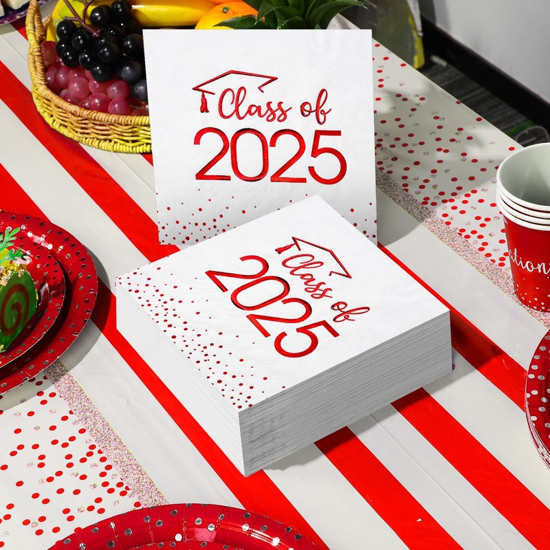 - Package Include: you will receive 200pcs red square class of 2025 graduation napkins in total,enough quantity fit for your usage and decoration needs,perfect for graduation party as table supplies.