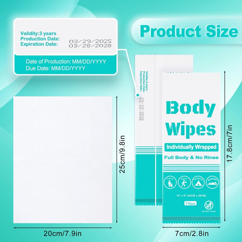 - Contents Include: You will receive 200 packs of individually wrapped body wipes, suitable for hand, face and body use, the wipes unfolded size of 9.8 x 7.9 inches, individually packaged for easy to carry