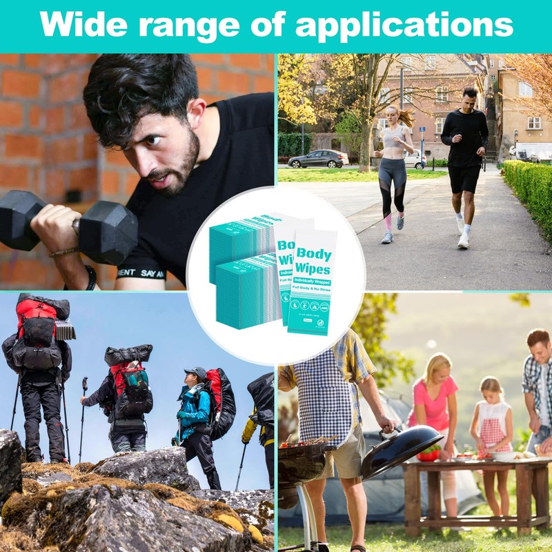 - Soft Material: Individually packaged body wipes are made of high quality fiber material, the fabric is thick, soft, delicate, skin-friendly, suitable for all skin types, thickened large size only 1 piece of wipes can wipe the whole body