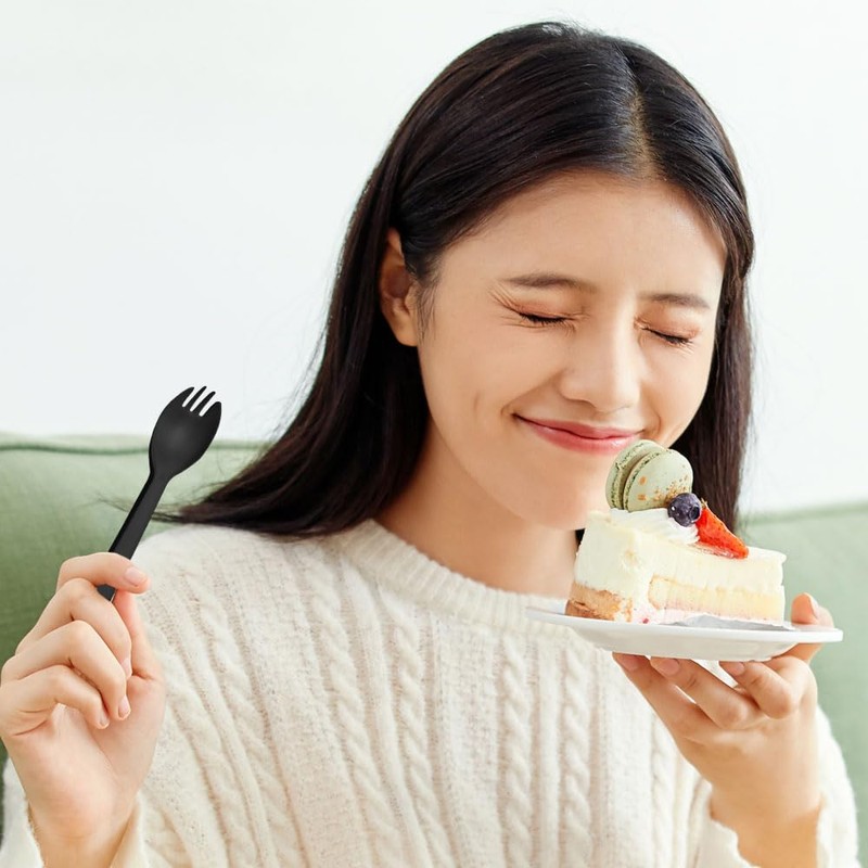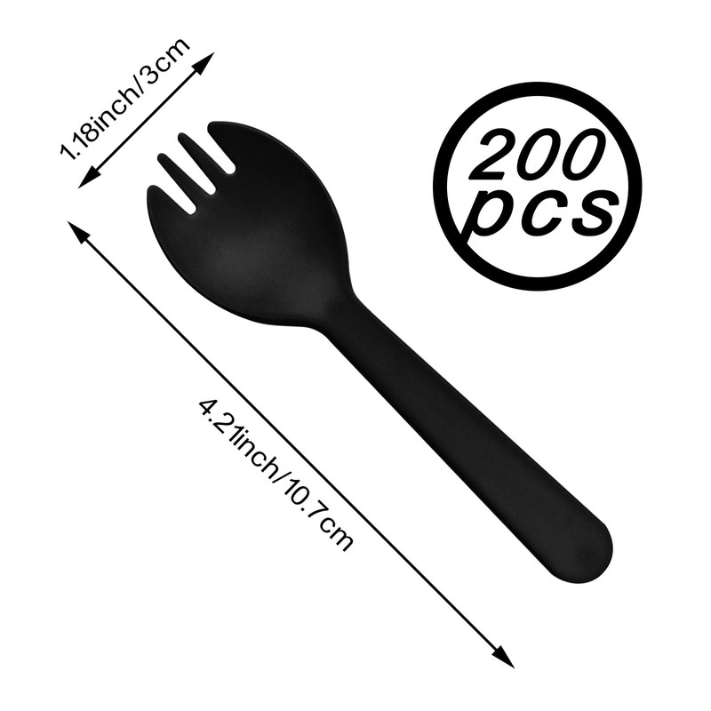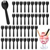 200Pcs Disposable Plastic Spoons Individually Wrapped Utensils 2 in 1 Fork and Spoons for Dessert Restaurant Outdoors Party Home Office Use (Black)