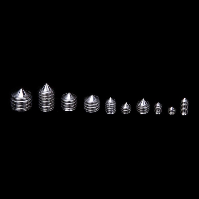 200Pcs Grub Screw, Cone Point Hex Socket Stainless Steel, M3/M4/M5/M6/M8, with Storage Box for Accuracy Instruments