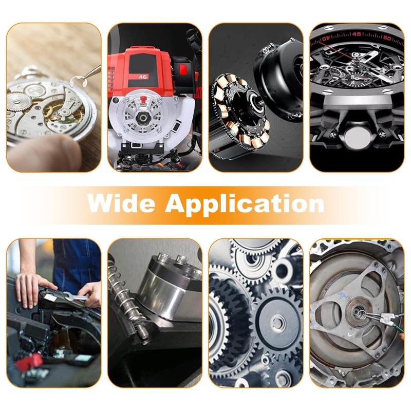 2. E-clips circlip rings are great for axles, shafts, and other moving parts. Such as cylinders, automobiles, valves, electrical appliances, spraying, doors and windows, bearings, machinery, etc. good for pros and hobbyists.