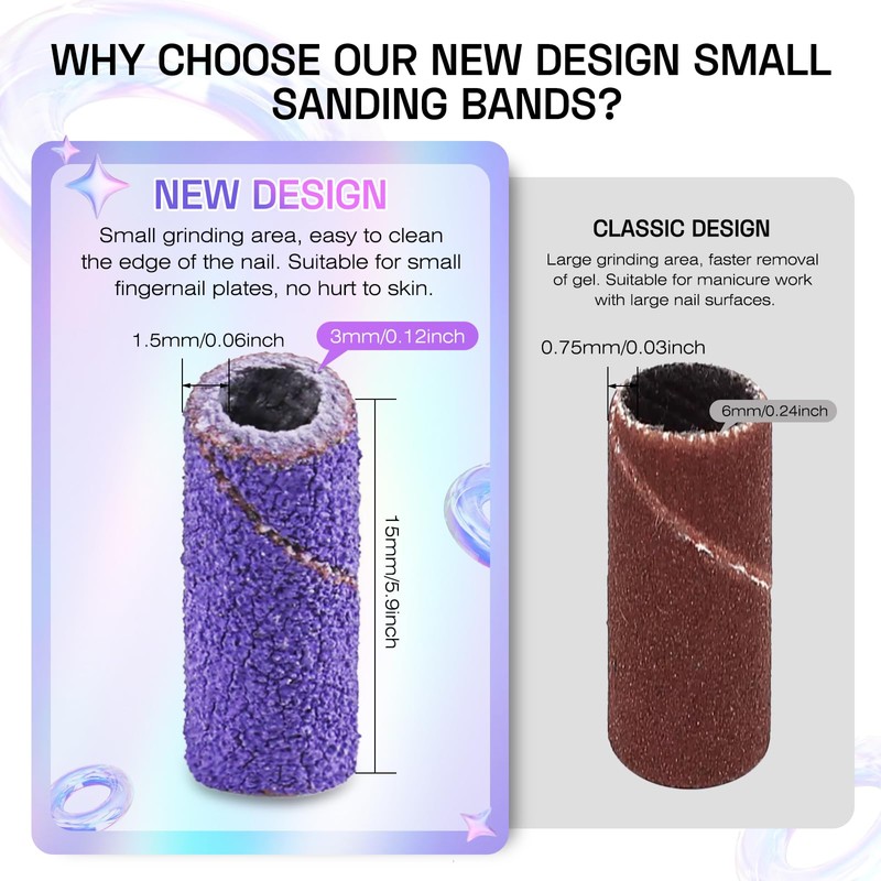 200Pcs Mini Sanding Bands for Nail Drill: 180 Grit Pink and Purple Small sanding band nail drill bit with 2pcs 3/32’’ Upgrade Mandrels Bits for Manicure & Pedicure and Nail Enthusiasts Use