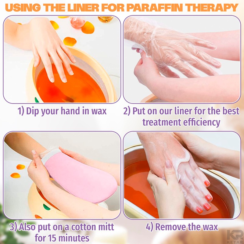 - Easy to Use: Use this wax paraffin gloves after dipping the hands in paraffin wax machine. This plastic liner can well keeps the wax from dripping and also helps with keeping the temperature of the wax around hands.