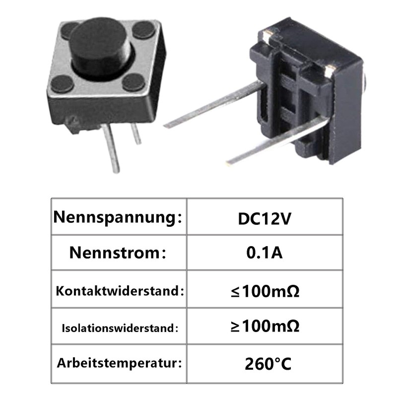 200pcs Tact Button Switch 6 x 6 x 5 mm PCB Momentary Tactile Tact Push Button Switch SPST Miniature/Mini/Micro/Small PCB (2 Pin)