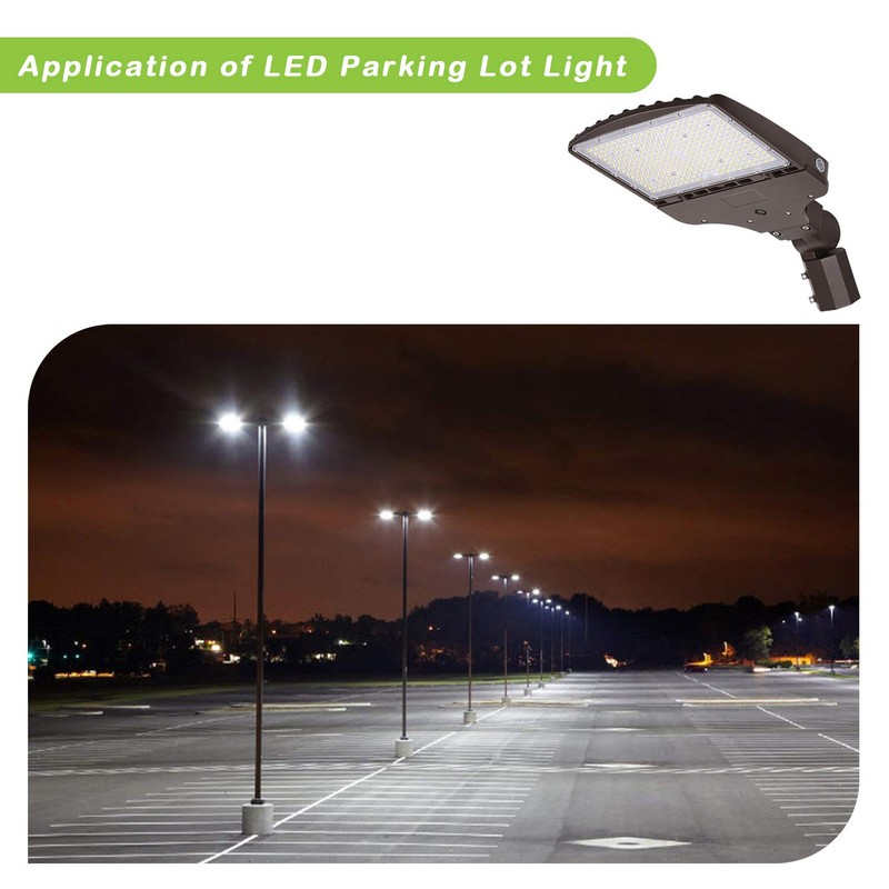 - ✔ Energy Saving - 200w led parking lot light with photocell provides 27000 Lumens at 5000K daylight white. Use brand LEDs with Light efficiency 135lm/w, much brighter than 400w metal halide, energy Savings of up to 70% over our product's lifespan.