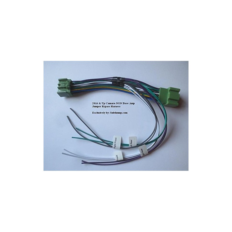 Our (6G-NB-JBP) amp integration T-harness is perfect for adding additional Amplfiers such as a subwoofer amp to your Camaro's stock GM amplifier. Please Note: 6th Gen Camaros can have one of three different stereo types. 1. Base Stereo NO Amp, 2. Factory GM Amp, 3. B*se Premium Stereo. This harness Only works for the Factory GM amp, which can be found under the spare tire cover in trunk. This amp has Horizontal Fins as shown in our photo. Please verify before ordering. This Harness will NOT work on Premium Factory Amps, which have the Diagonal Fins. This harness will not work on unamplified base stereo. Please note that this harness does Not provide 12v switched power for amp turn-on, as there is none present in newer Camaros, therefore you will need to use an amp with signal sensing high level inputs OR a signal processor with signal sensing input to trigger on your amp. Harness contains 4 channel blunt cut leads approximately 13" long and can be extended by user as needed. Please Note: 6th Gen Camaros can have one of three different stereos. 1. Base Stereo NO Amp, 2. Factory GM Amp, 3. B*se Premium Stereo. This harness Only works for the Factory GM amp, which can be found under the spare tire cover in trunk. This amp has Horizontal Fins as shown in our photo. Please verify before ordering. This Harness will NOT work on Premium Factory Amps, which have the Diagonal Fins. This harness will not work on unamplified base stereo.