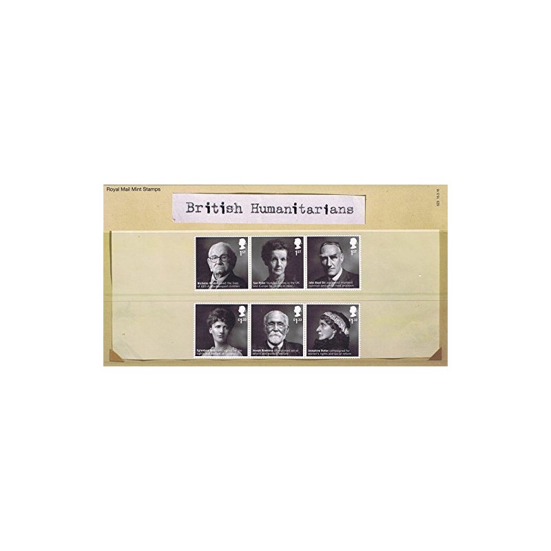 - 2016 British Humanitarians stamps in Presentation Pack. British Presentation Packs catalogue number PP496 (printed no. 523)