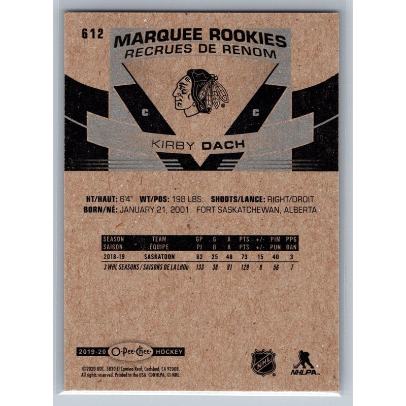 2019-20 O-Pee-Chee Hockey #612 Kirby Dach Rookie Card RC Hockey Card Chicago