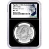 Each 2019 Apollo 11 Half Dollar available here was struck from 91.67% copper and 8.33% nickel at the Denver Mint and has been certified flawless MS70 First Day of Issue by NGC. The coin's obverse design features the indented footprint left by astronaut Neil Armstrong along with the names of the space programs that led to the historic moment: MERCURY, GEMINI and APOLLO separated by phases of the Moon.
