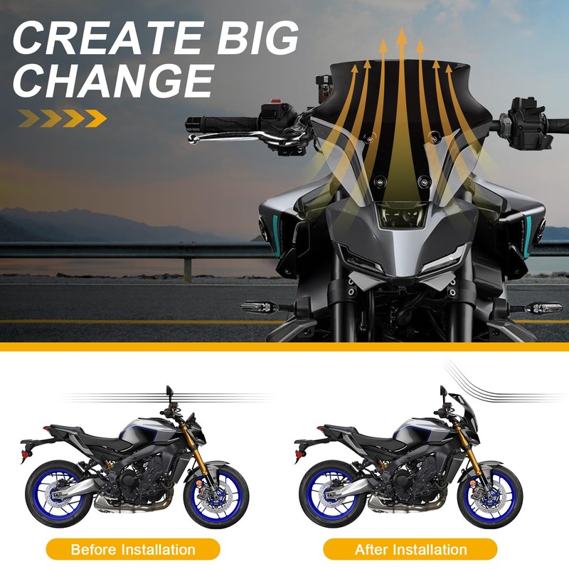 - 【Installation】The MT-09 windshield is easy to install, with no drilling or other complications, allowing you to install it quickly and experience a higher level of variability on your motorcycle.