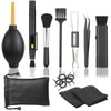 - (Set Contents) 10-piece set: 8-piece cleaning tools convenient for cleaning camera lenses: 1 x dual use keyboard button extracting tool, 2 x air blower, 3 x liquid spray bottle (cleaner fluid sold separately), 4 x tweezers, 5 x lens brush, 6 x dust brush, 7 x microfiber cleaning cloth, 85 x drawing tools, 9 x folding brush, storage bag