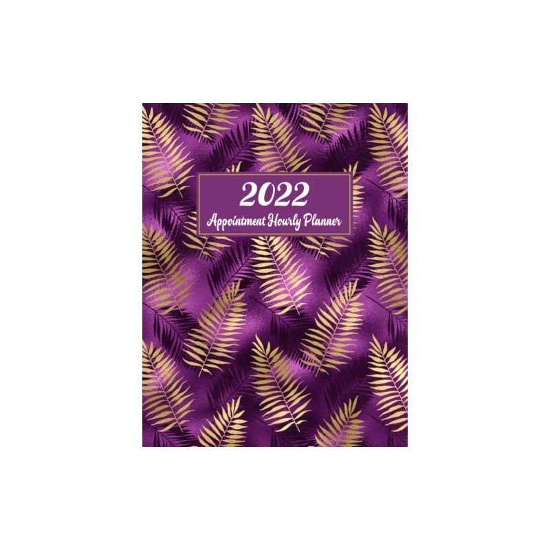 2022 Hourly Planner Appointment Book: Purple & Gold Leaves | Daily Columns in 15 Minute Increments from 8:00 AM - 9:00 PM ~ Includes Monthly Overviews