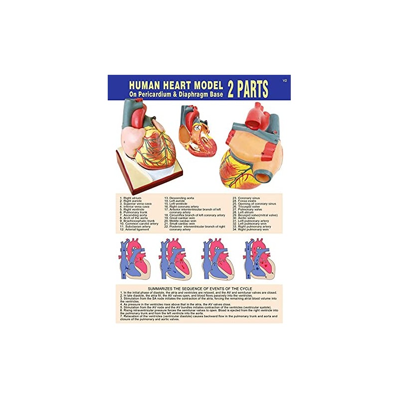 - The package includes: 2 pieces - human heart model for use in patient education or anatomical studies, includes a high-quality, solid and beautiful base (pericardial and diaphragm base), includes detailed, colourful instructions with 34 hand-numbered anatomical features