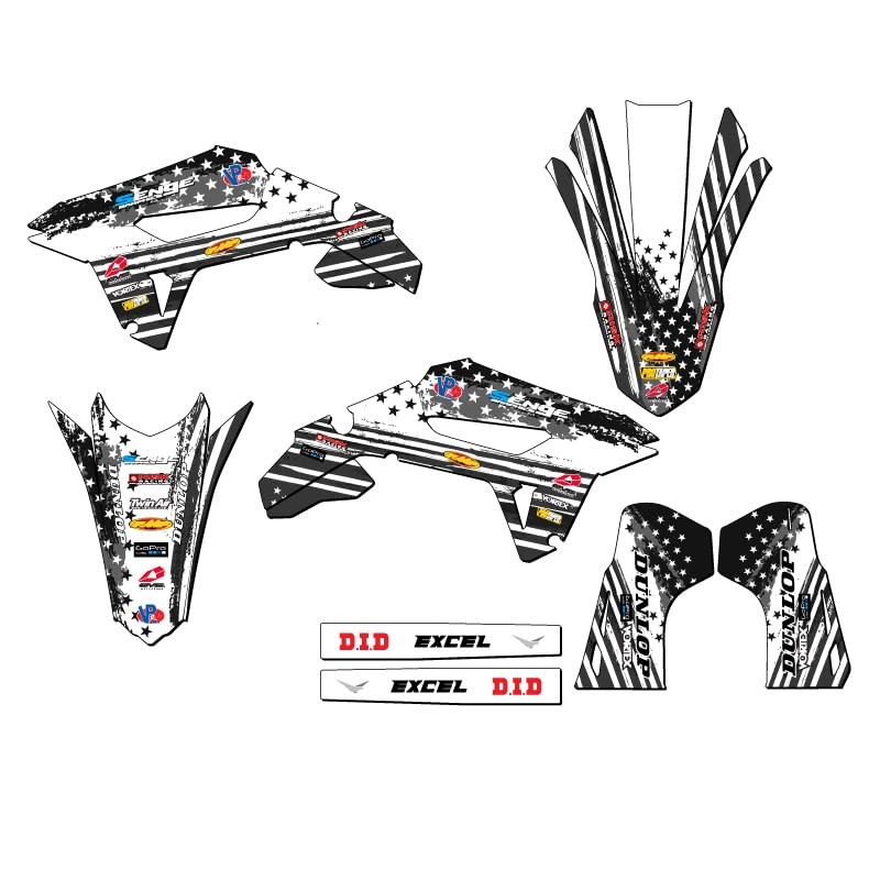 - 2023-2024 CRF 450 R-S MERICA Grey Senge Graphics Kit Compatible with Honda. The photo shown shows the exact decals you will receive. Please refer to the photo to make sure you are getting the exact amount of coverage you want. You can toggle between base, complete, and rider I.D. to see all of the differences.
